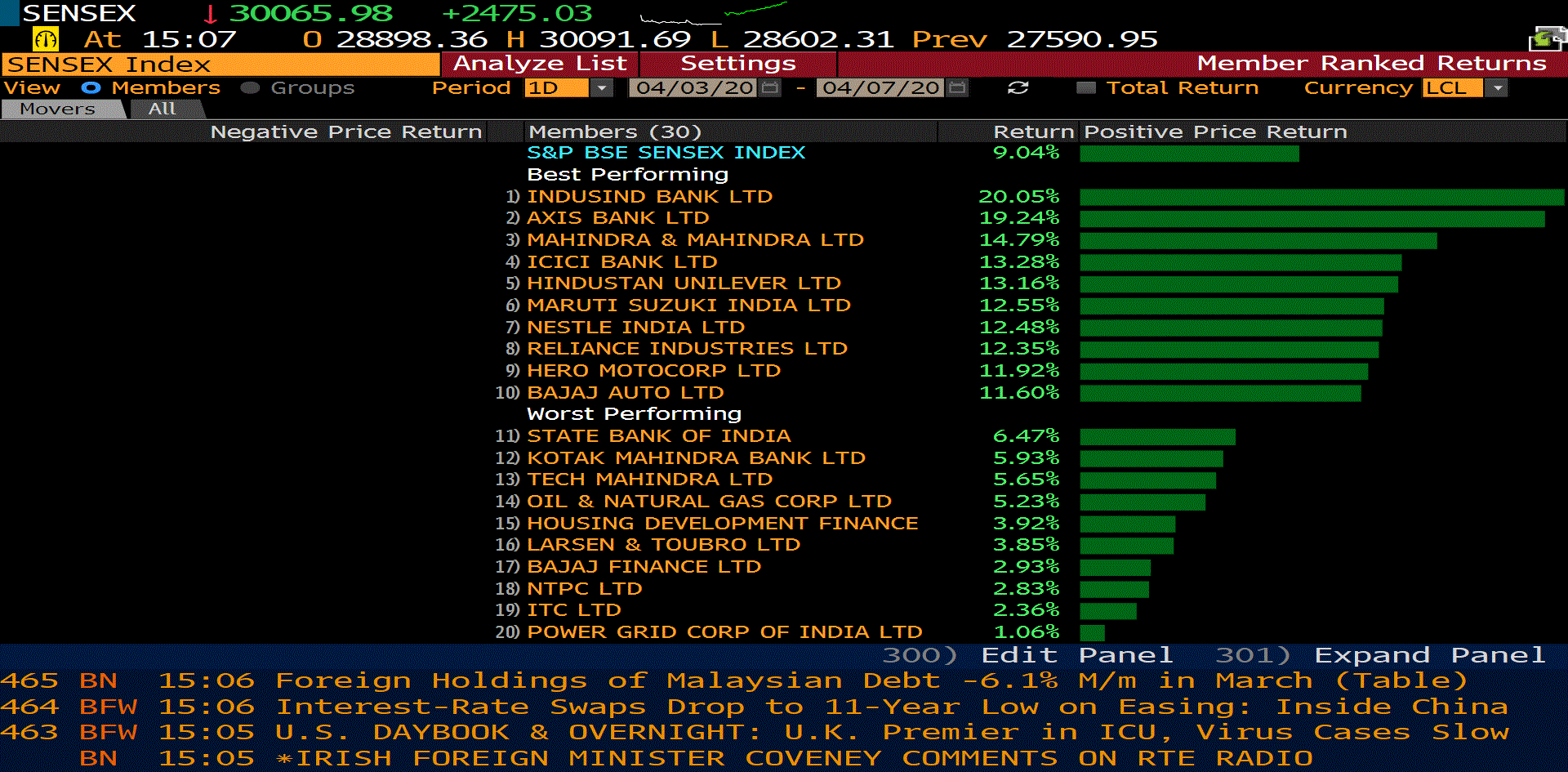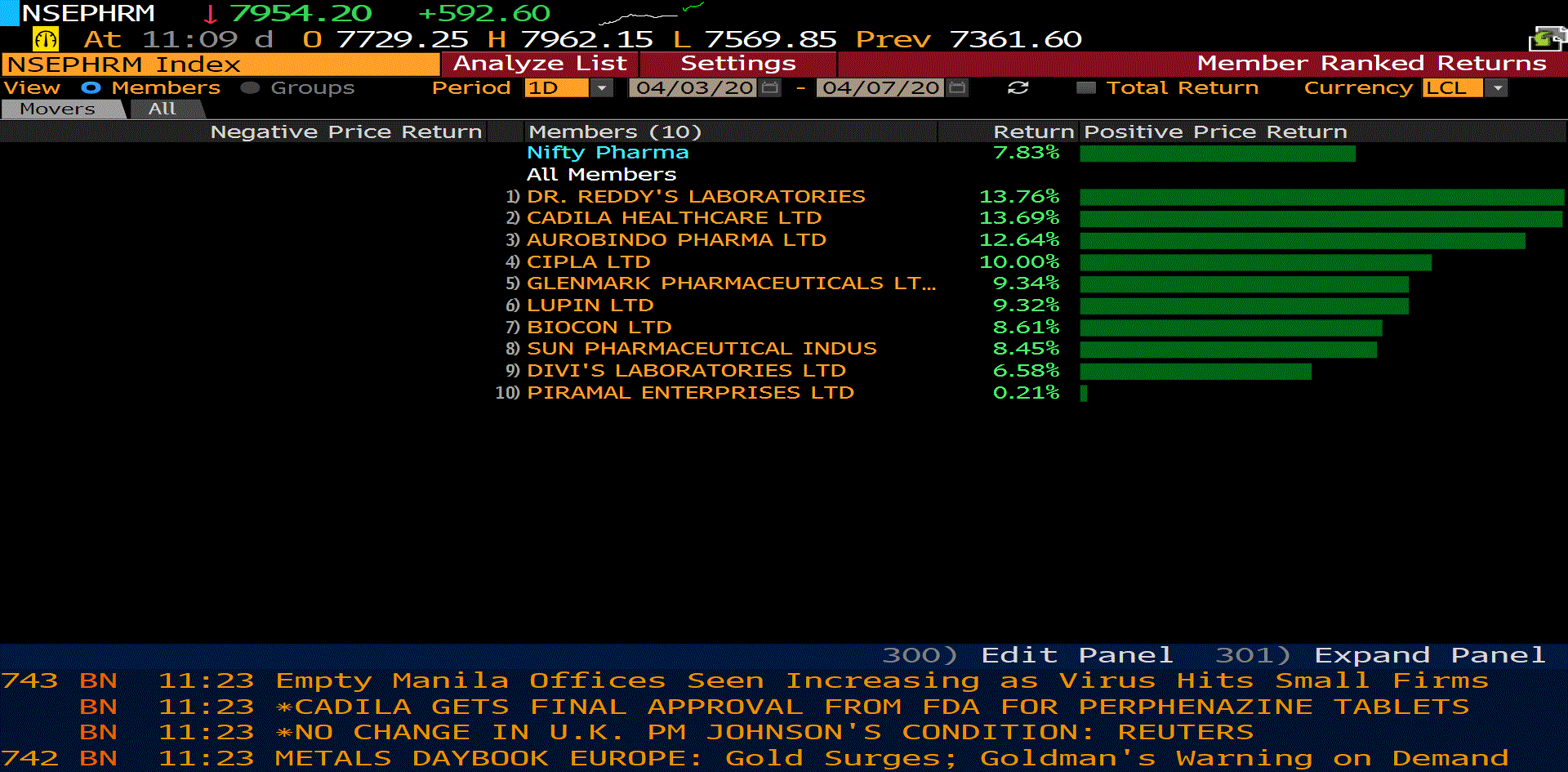 1,516 stocks ended the day with gains while 329 bucked the trend to end with losses.