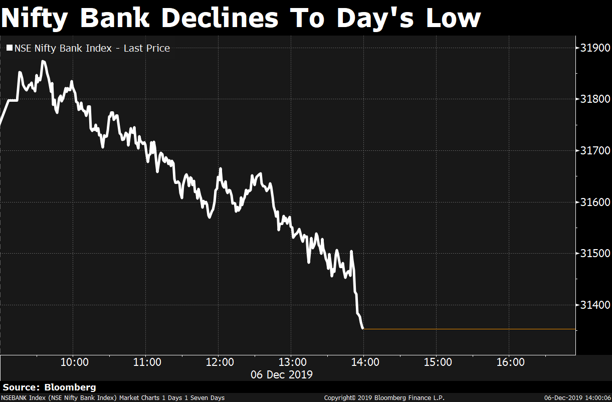Indian equity benchmarks traded near the day’s low in the afternoon session led by declines in state-owned lenders.