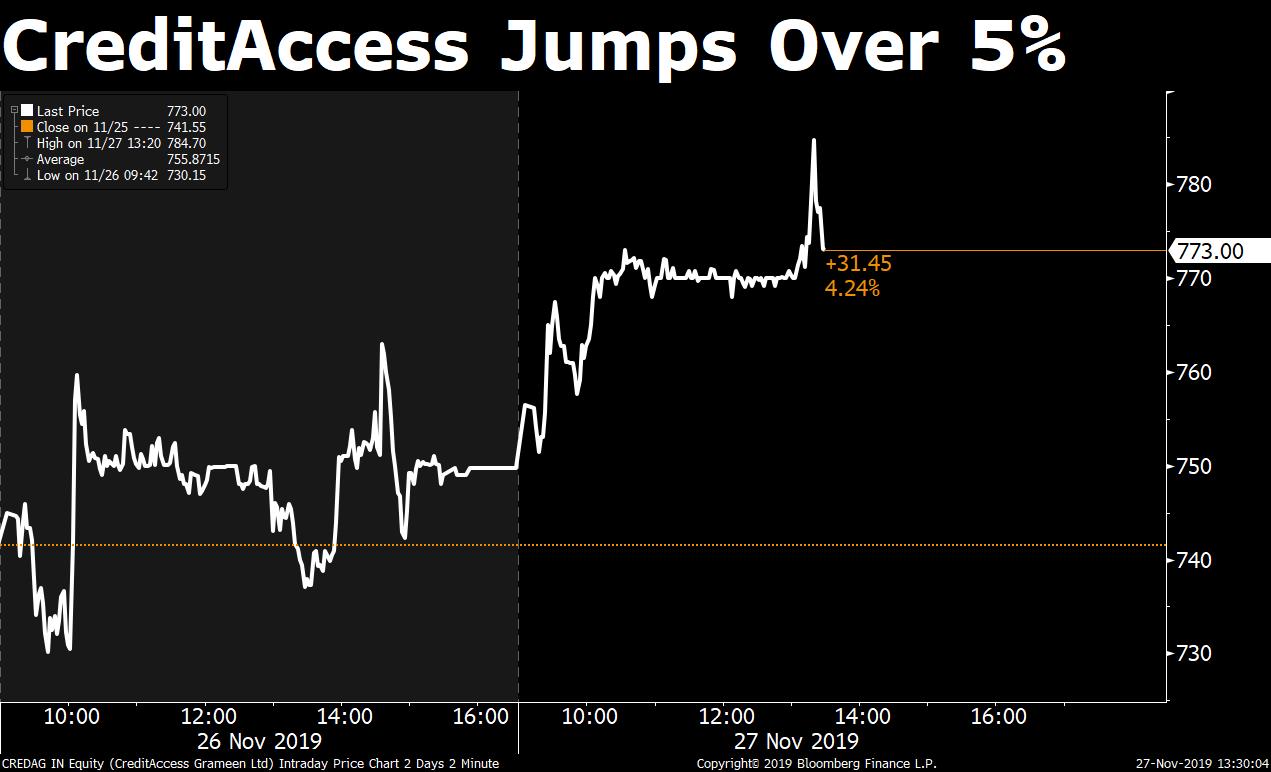 Shares of the New Delhi-headquartered firm pared gains and traded 1.7 percent higher to Rs 61.90 each. The stock rose as much as 4.6 percent earlier in the day.