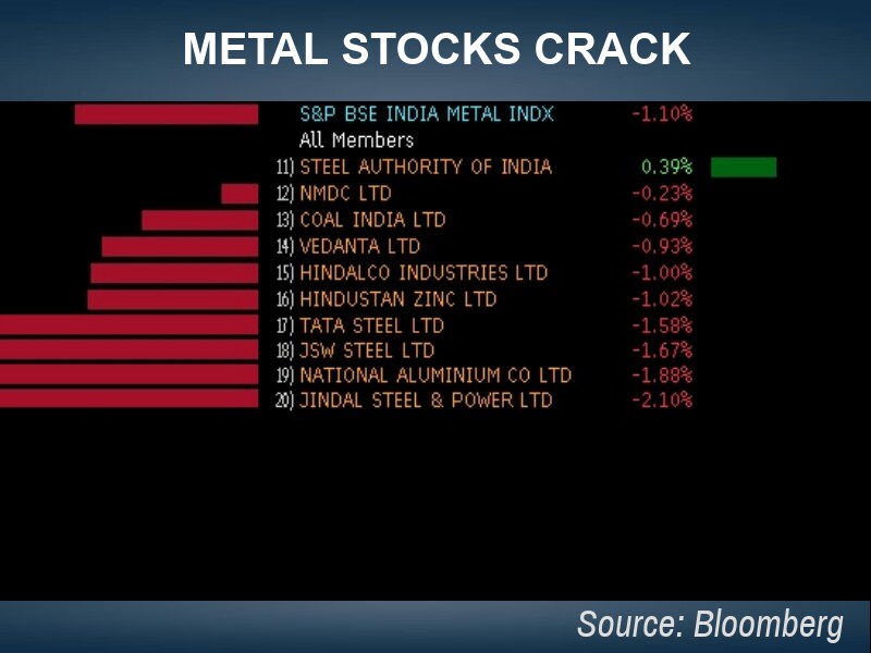 • Fourteen out of 19 sector gauges compiled by BSE were trading lower led by the S&P BSE Metal Index's 1.11 percent drop. On the other hand, the S&P BSE Realty Index was top sectoral gainer, up 0.4 percent.