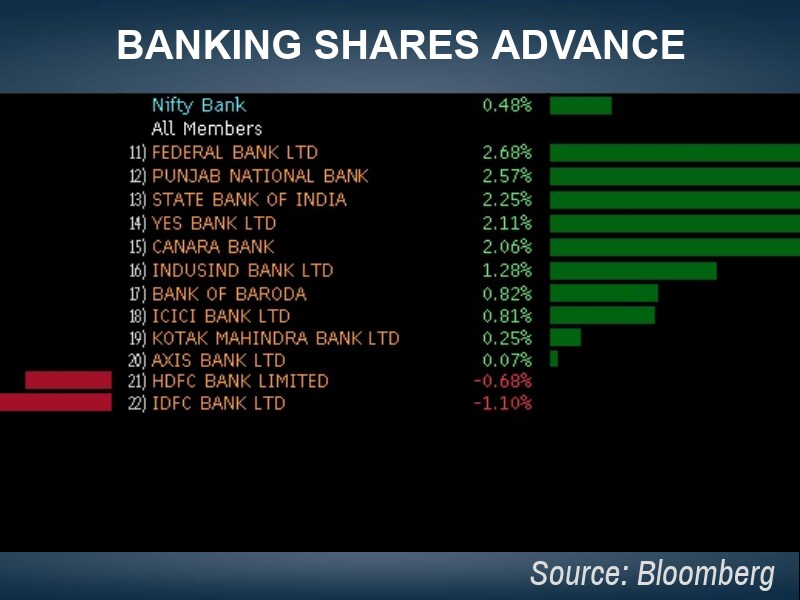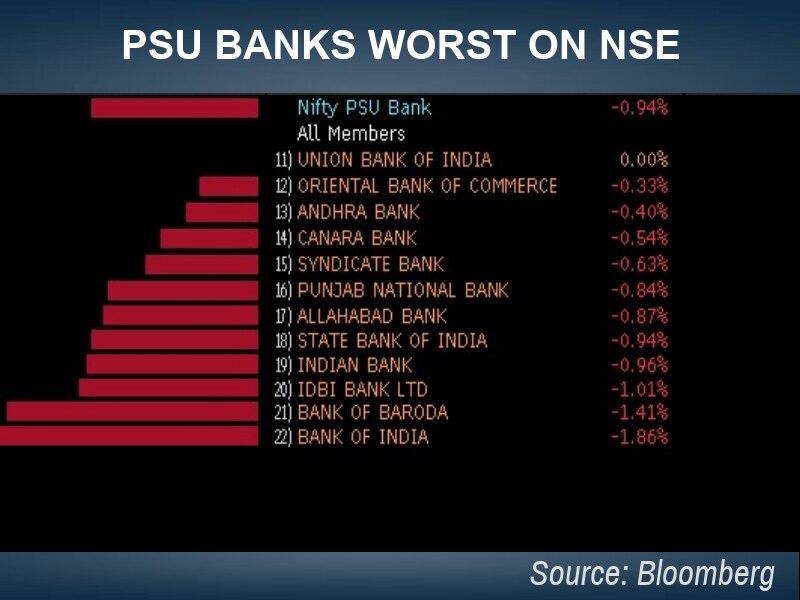 • Thirteen out of 19 sector gauges compiled by BSE were trading lower led by the S&P BSE Power Index's 1 percent fall. On the other hand, the S&P BSE Bankex Index was the top sectoral gainer, up 0.4 percent.