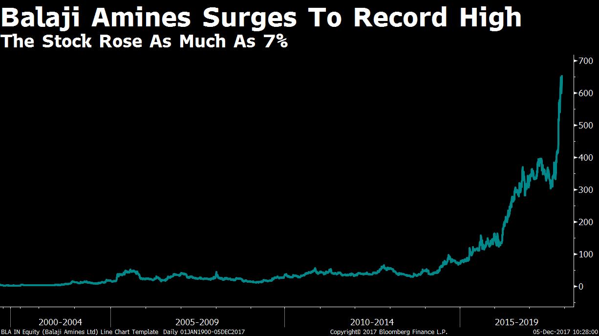 Balaji Amines: Shares of the Secunderabad-based chemical maker rose as much as 7 percent to record high of Rs 674.50 after the government of Maharashtra conferred 'Mega Project' status to the expansion being undertaken by the company at MIDC Chincholi in Solapur, Maharashtra.