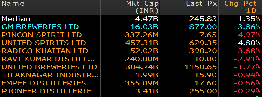 • United Spirits trade at a significant premium to peers.