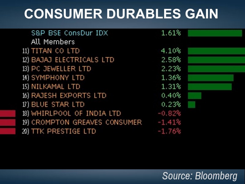 Shares of the jewelery retailers like Tribhovandas Bhimji Zaveri, Titan Company, Gitanjali Gems, Thangamayil Jewellery and PC Jeweller jumped up to 5 percent after the government on Friday relaxed norms for buying gold jewellery above Rs 50,000.