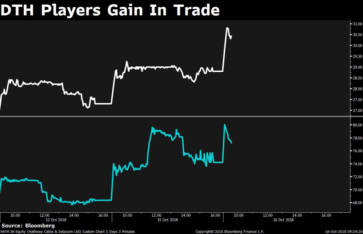Hathway Cables: The Mu8mbai-based cable television service provider rose as much as 8.3 percent to Rs 31.20 on report that Reliance Industries may buy controlling stake in the company.