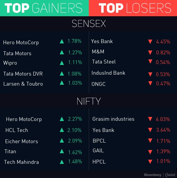 Indian equity benchmarks held on to gains led by Infosys, HDFC Bank, Kotak Mahindra Bank and Axis Bank.