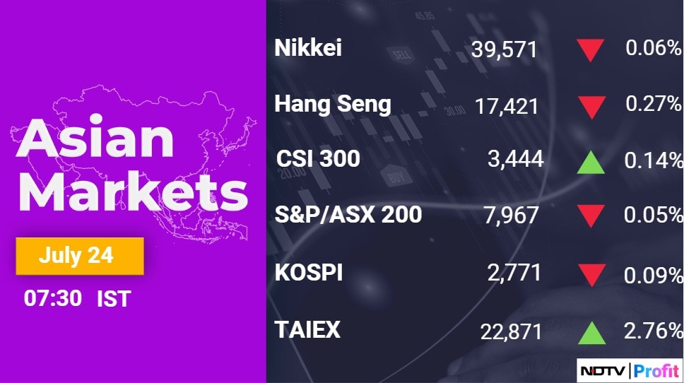 At pre-open, the Nifty was at 24,444.95, down by 0.14% or 34.10 points and the Sensex was at 80343.61, down 0.11% or 85.43 points.