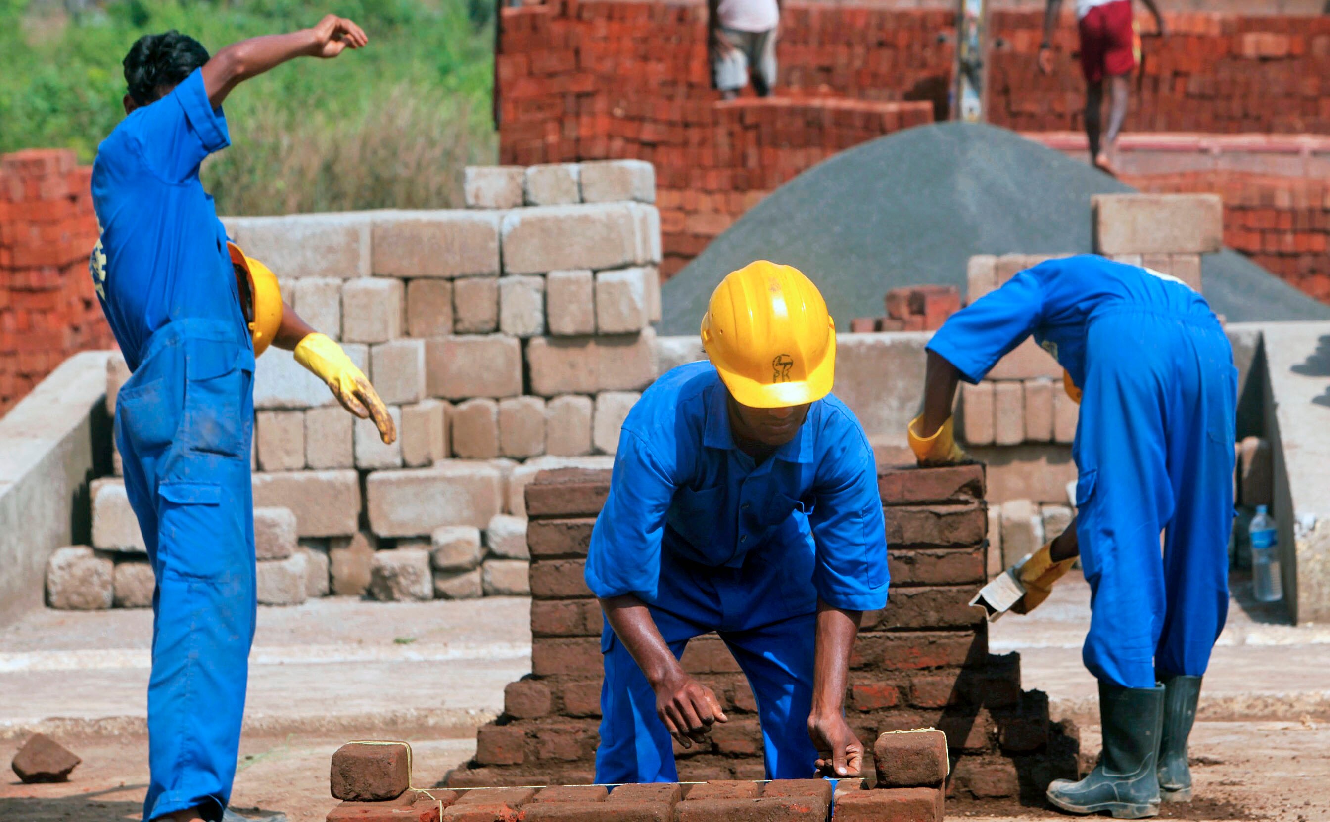 Trainees at an L&T Construction Skills Training Institute. (Photographer: Adeel Halim/Bloomberg)
