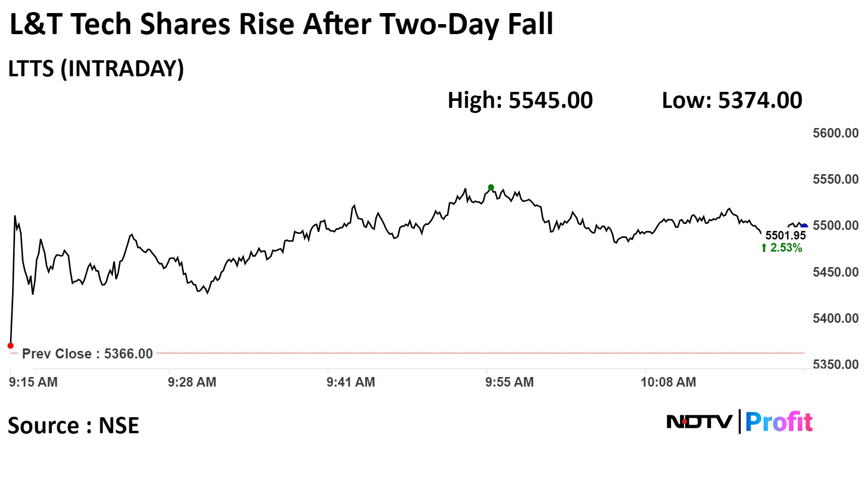 Shares of L&T Technology Services Ltd. snapped a two-day losing streak on Wednesday after its third-quarter profit rose in line with analysts' estimates.