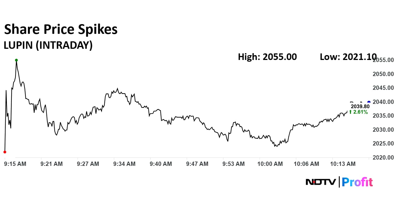 Lupin Ltd.'s share price rose 3.37% on Friday after the company received an upgrade from 'Hold' to 'Buy' by Investec. The brokerage also raised the target price to Rs 2,348 from the previous Rs 1,732.