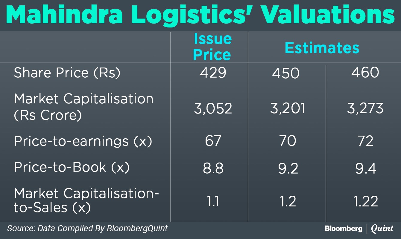 Qualified institutional buyers and high net worth individuals put in bids for 15.6 and 2.07 times the shares on offer, respectively. The portion reserved for retail buyers was subscribed 6.1 times. At the issue price, Mahindra Logistics will command a market capitalisation of close to Rs 3,052 crore, according to BloombergQuint's calculations.