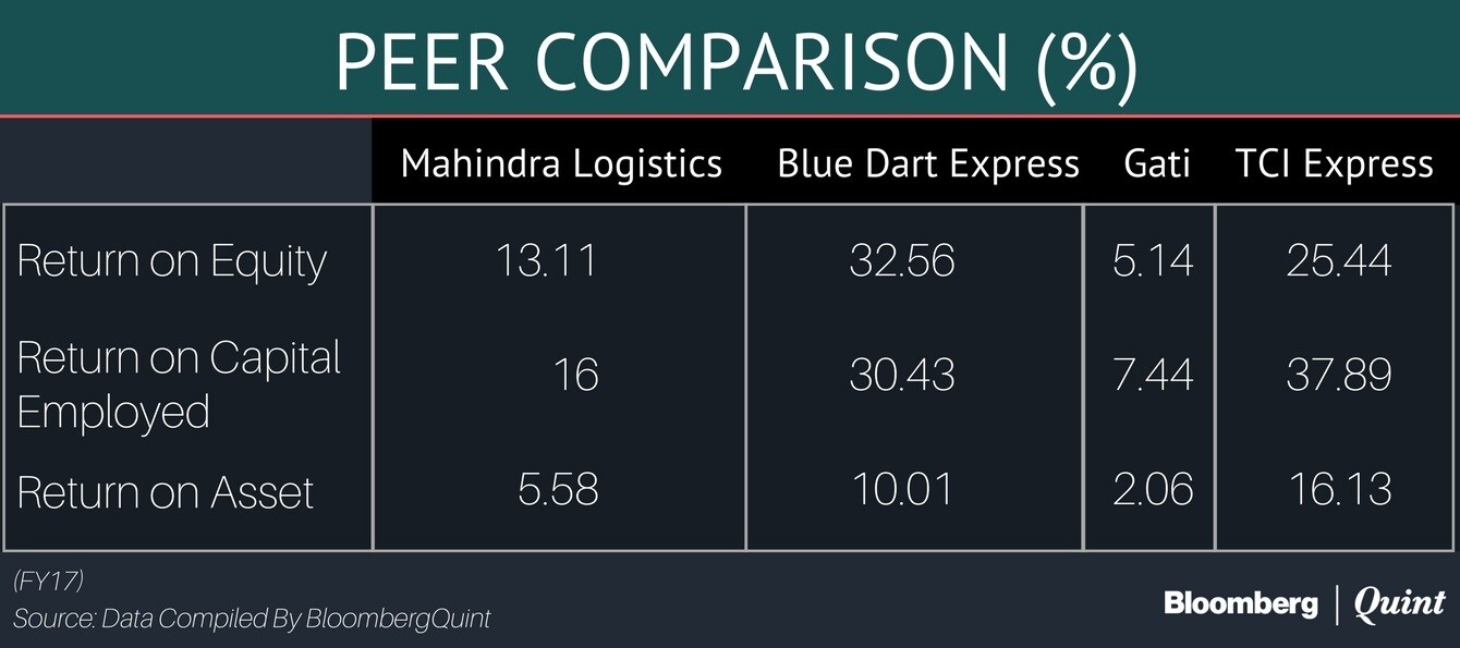 Mahindra Logistics lagged peers on return ratio comparison.