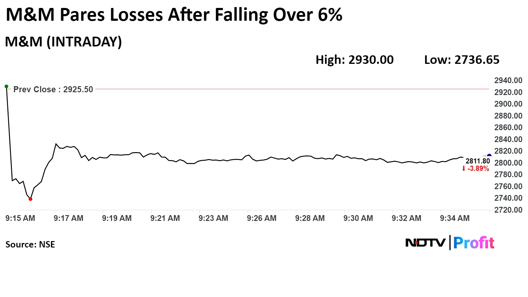 Shares of Mahindra and Mahindra Ltd. fell over 6% on Wednesday after the company slashed the price of its best-selling sports utility vehicle.