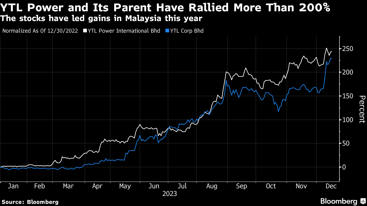 Even after soaring more than 200% in 2023 to a record high earlier this month, valuations remain undemanding. YTL Power is trading at about seven times forward-earnings estimates, compared with its five-year average of almost 13 times.