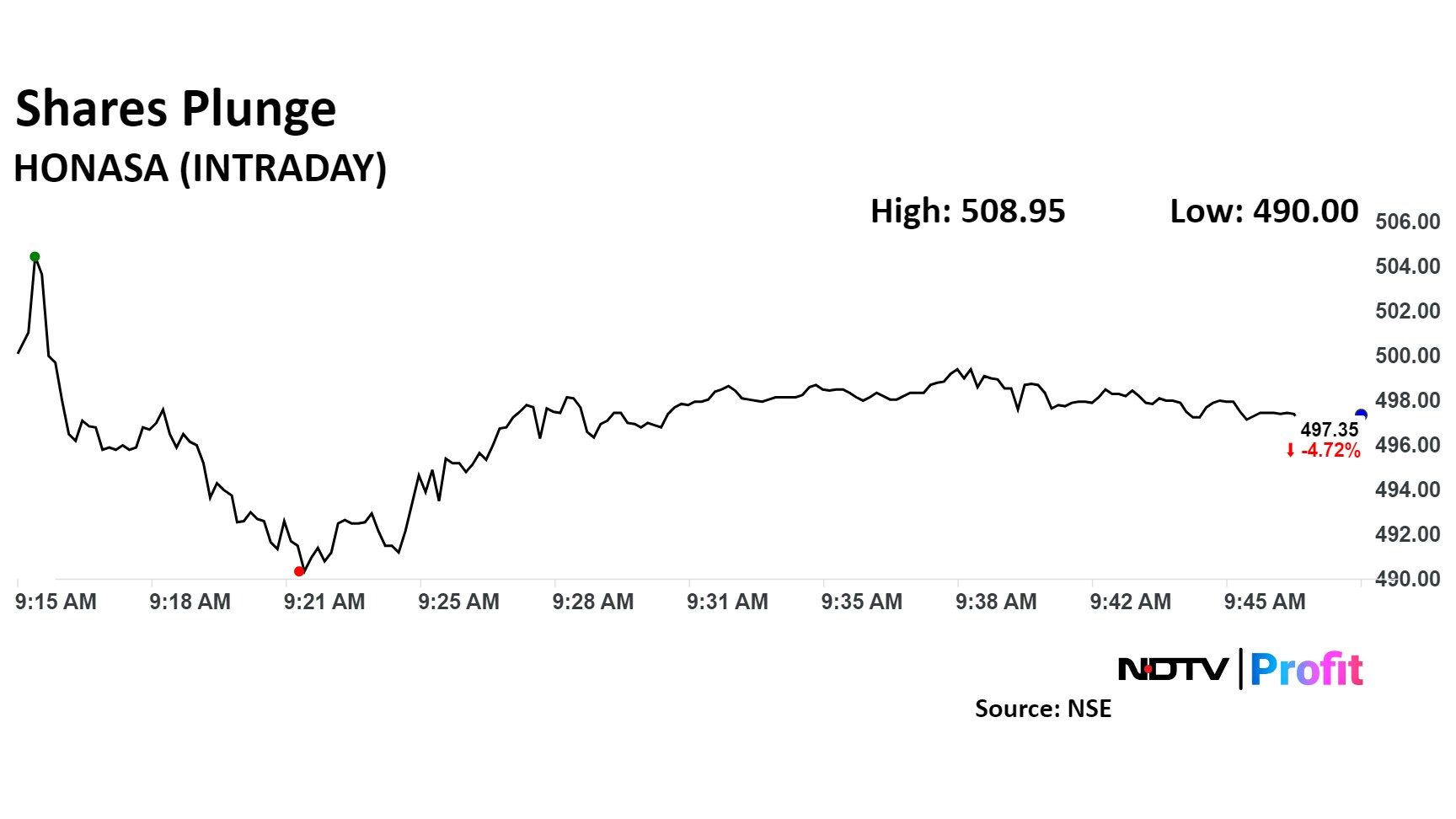 Shares of the company fell as much as 6.13% before paring loss to trade 2.50% lower at Rs 508.95 apiece, as of 09:36 a.m. This compares to a 0.62% advance in the NSE Nifty 50.