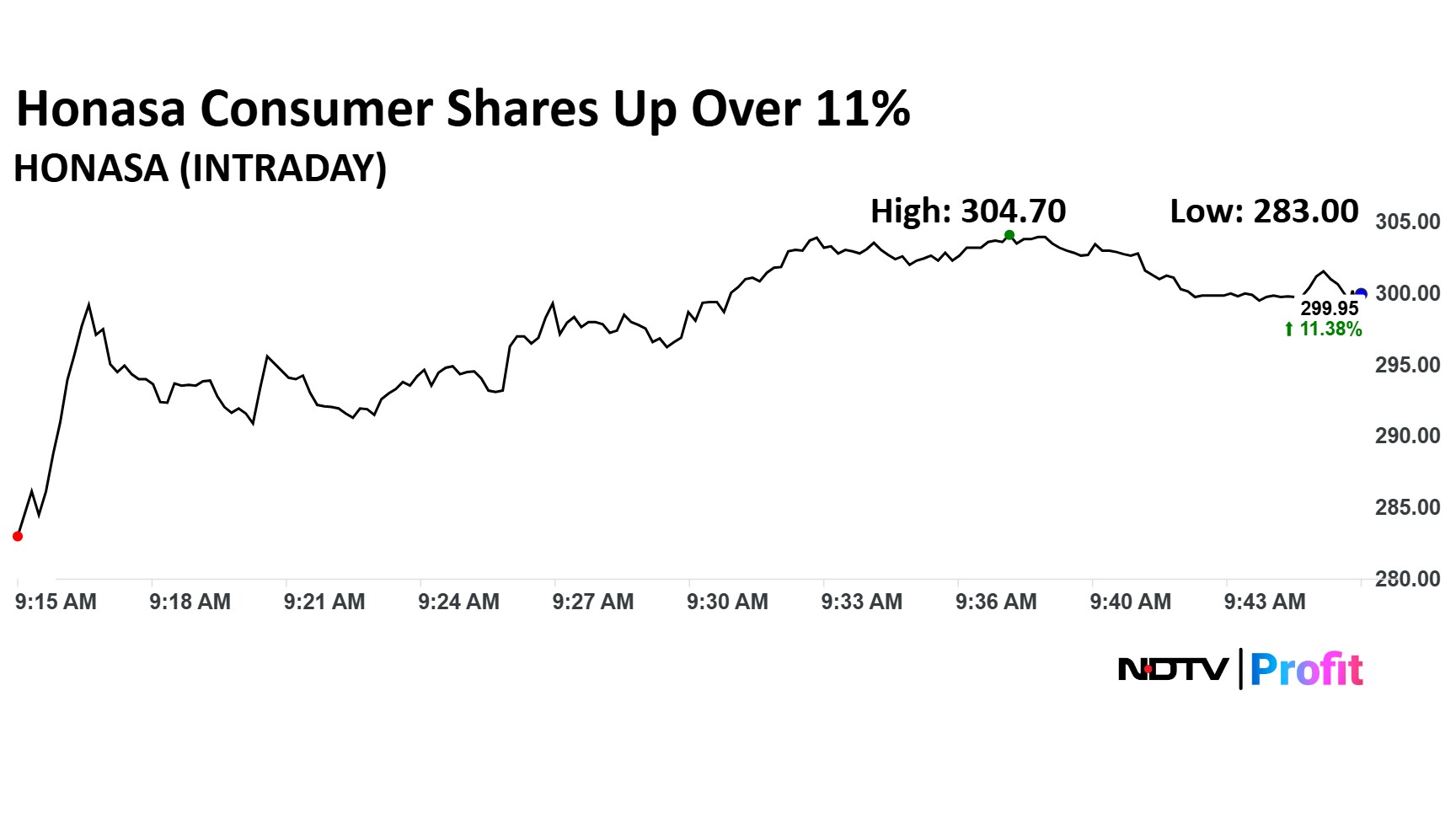 Mamaearth stock rose as much as 13.5% during trade so far to Rs 304.7 apiece on the NSE. It was trading 11.36% higher at Rs 299.9 apiece, compared to an 0.39% advance in the benchmark Nifty 50 as of 9:54 a.m.