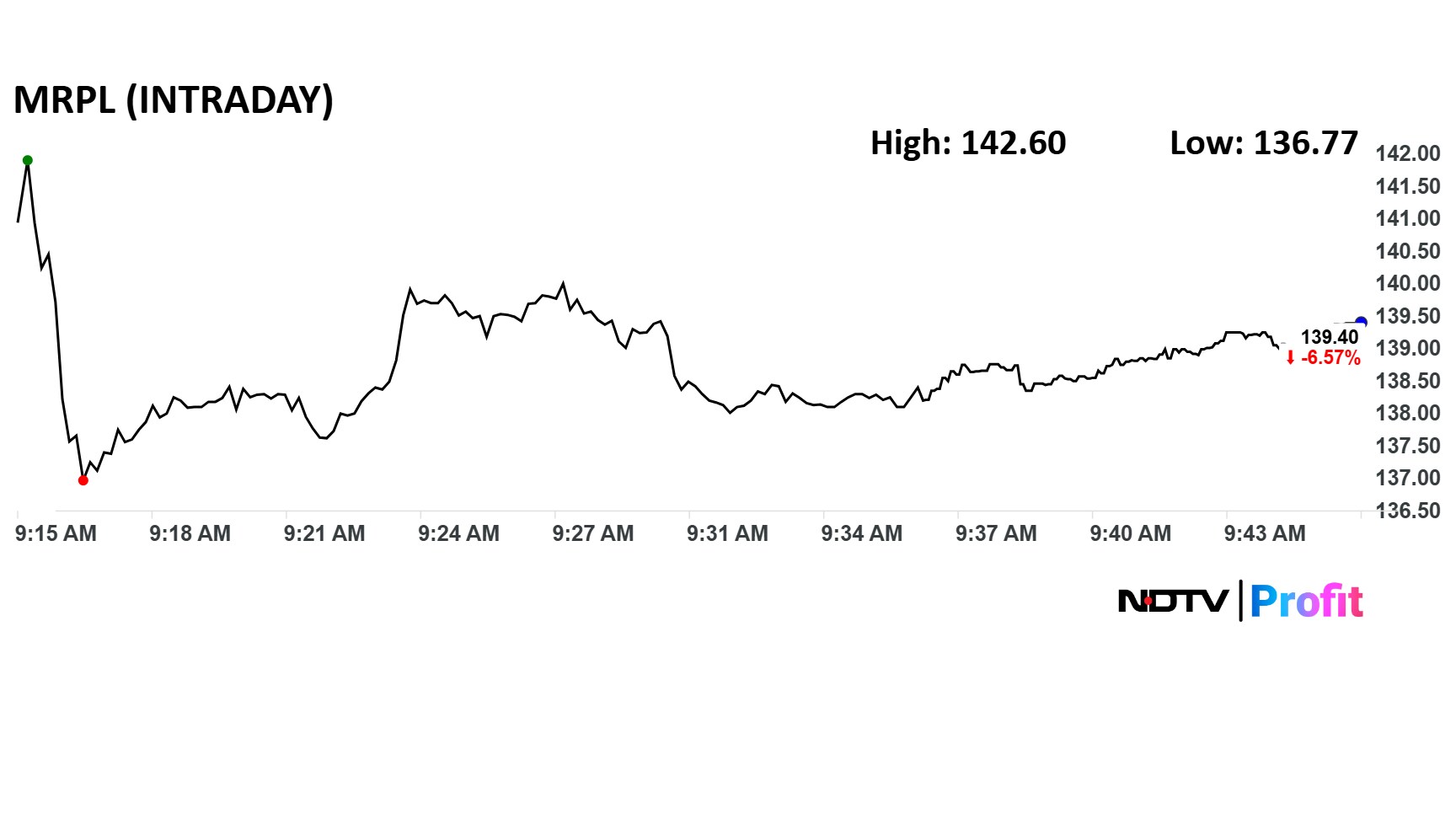MRPL share price declined over 8% intraday to Rs 136.77 apiece. The benchmark NSE Nifty 50 was down 0.25%.
