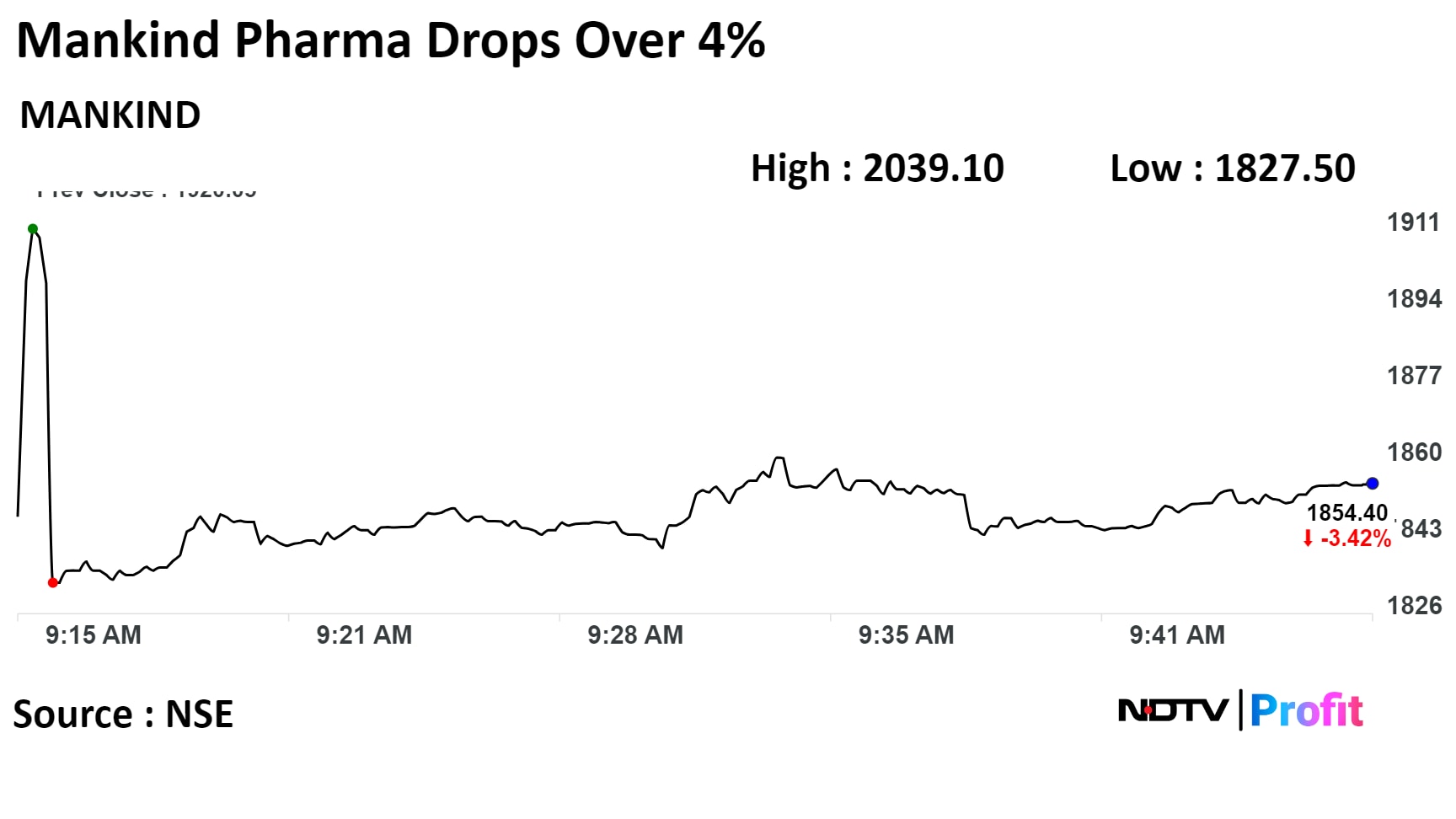 Mankind Pharma's stock fell as much as 4.83% during the day on the NSE, to Rs 1,827.50 apiece, the lowest since Sept.1, when it fell over 6%. The stock was trading 3.75% lower at Rs 1,848 apiece compared to a 0.11% advance in the benchmark Nifty 50 at 9:45 a.m.