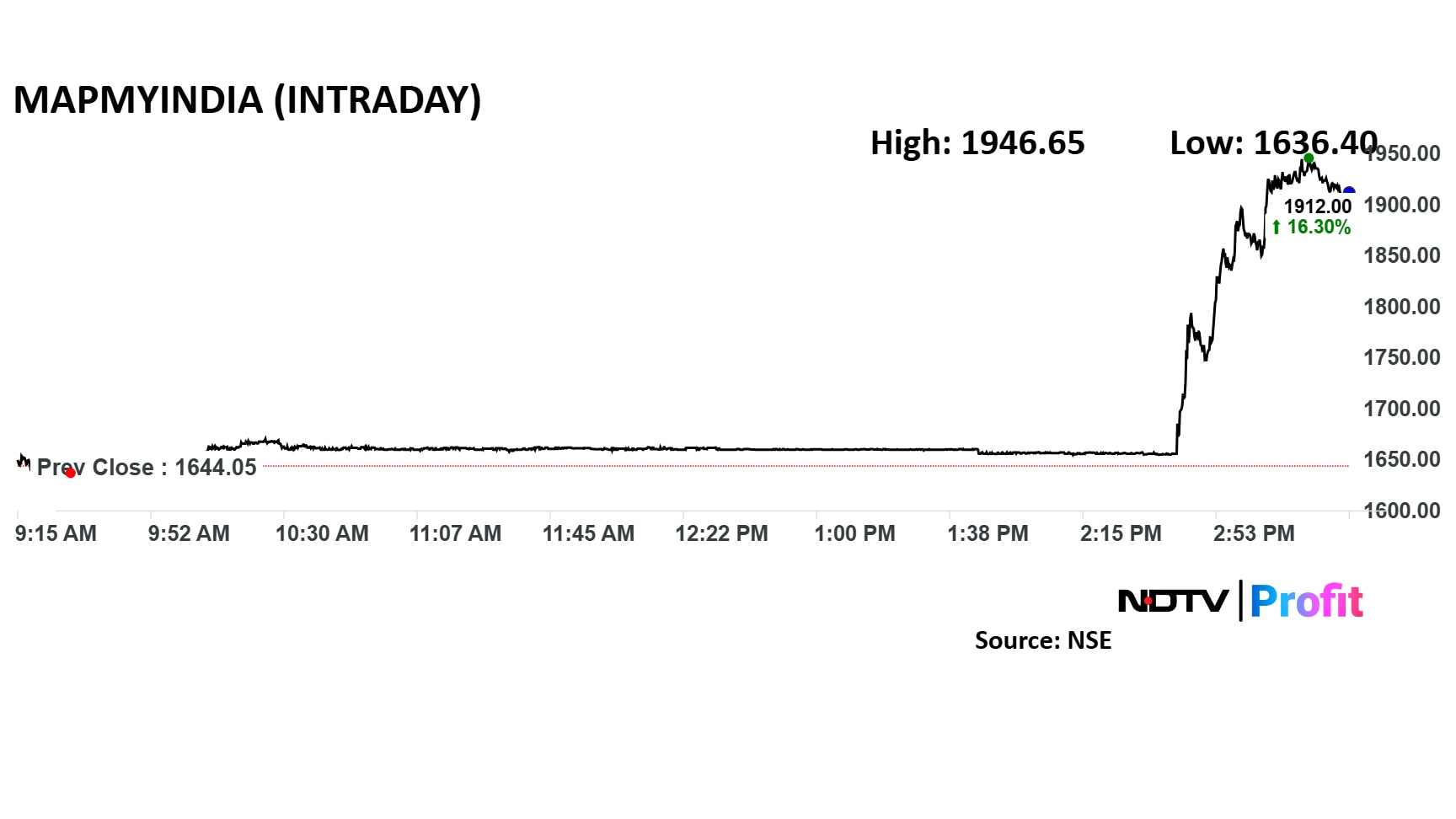 Shares of CE Info Systems soared as much as 18.4% to Rs 1,946.65 apiece on the National Stock Exchange. The scrip settled 16% higher at Rs 1,912, compared to a 0.24% decline in the benchmark Nifty 50.