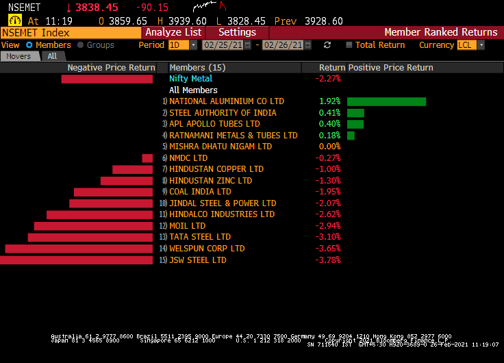 • Nifty Metal index down 3.3% while Realty index declines 3%