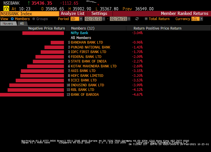 • Nifty Bank down 4.3% at 34,968