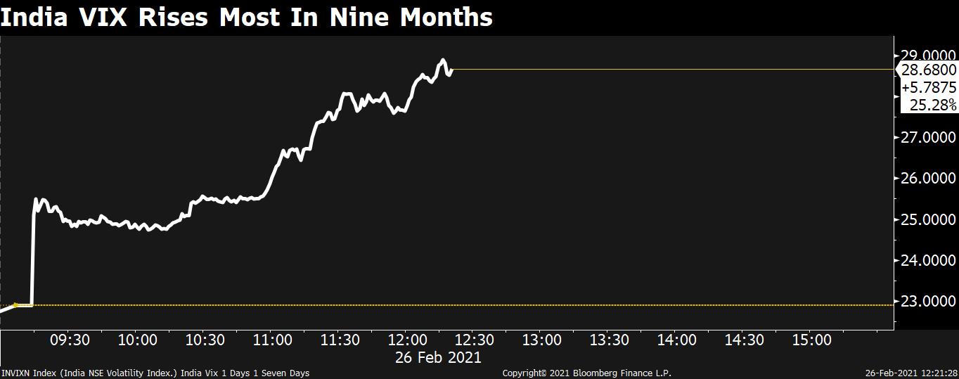 • India Volatility Index up 22% at 28