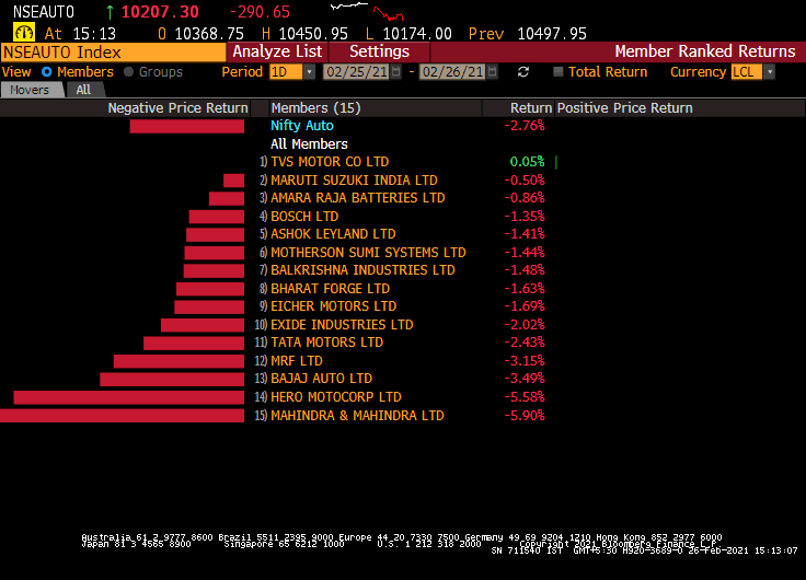 • Nifty Auto and Nifty Media index down 2.5% each