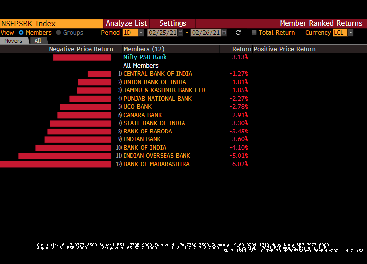 • Nifty PSU Bank index down 3.8%