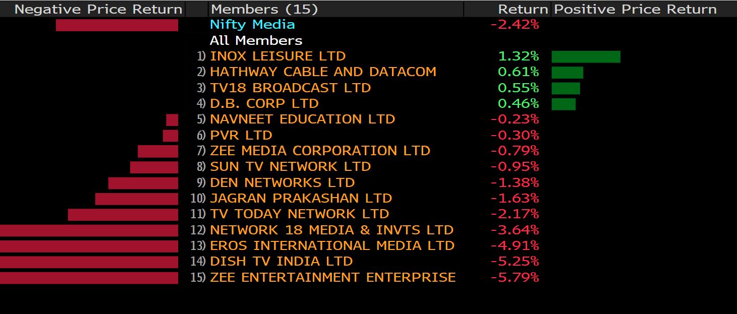 On the flipside, Zee Entertainment Enterprise fell as much as 7.5 percent, making it the worst performer on Nifty.