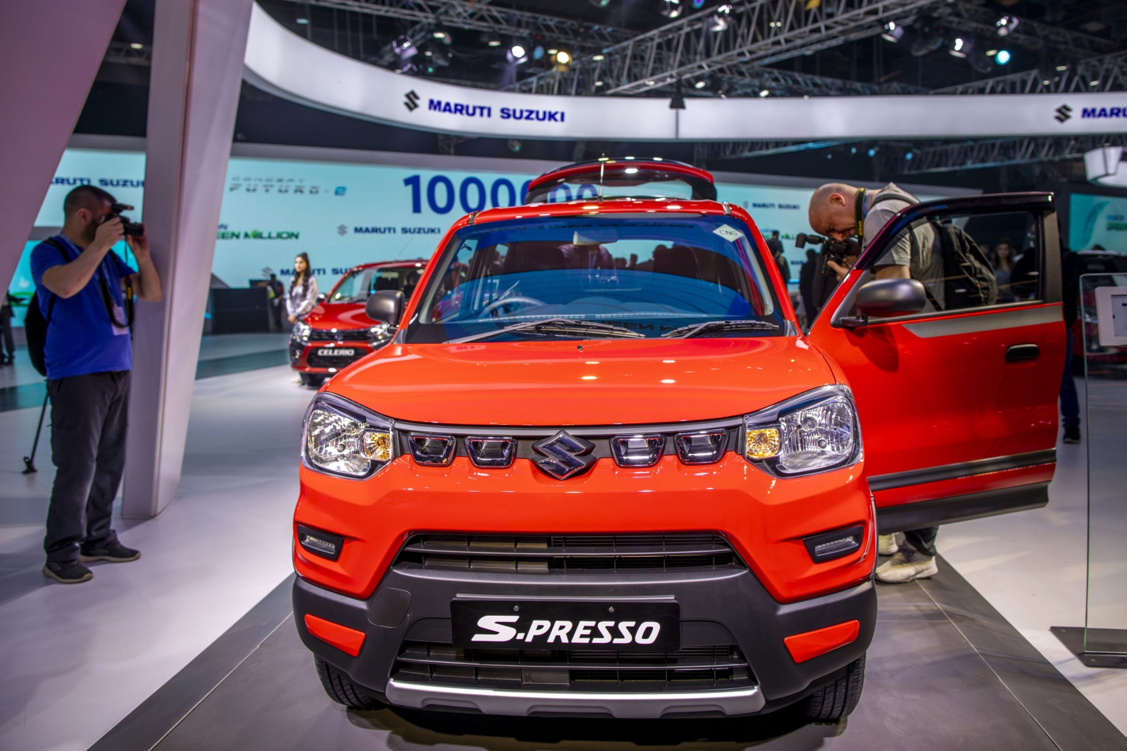 Members of the media takes photographs of a Maruti Suzuki India Ltd. S-Presso SUV. (Photographer: Prashanth Vishwanathan/Bloomberg)