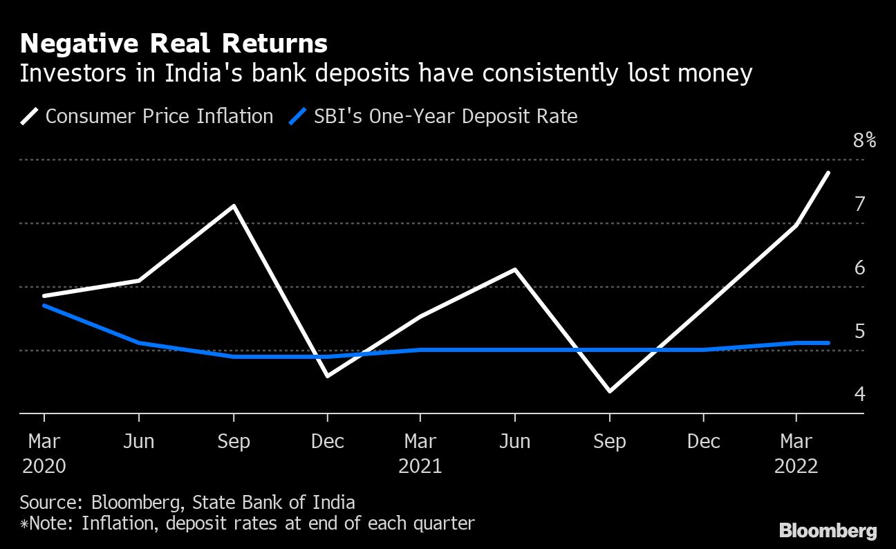 As inflation has pushed past 6%, bank deposits have steadily become less attractive because the real return on fixed deposits turned negative. Consumer price increases have shot up to the highest levels in decades in many countries around the world, with a reading last week in the US that notched a 40-year high adding to a slate of troubling data.