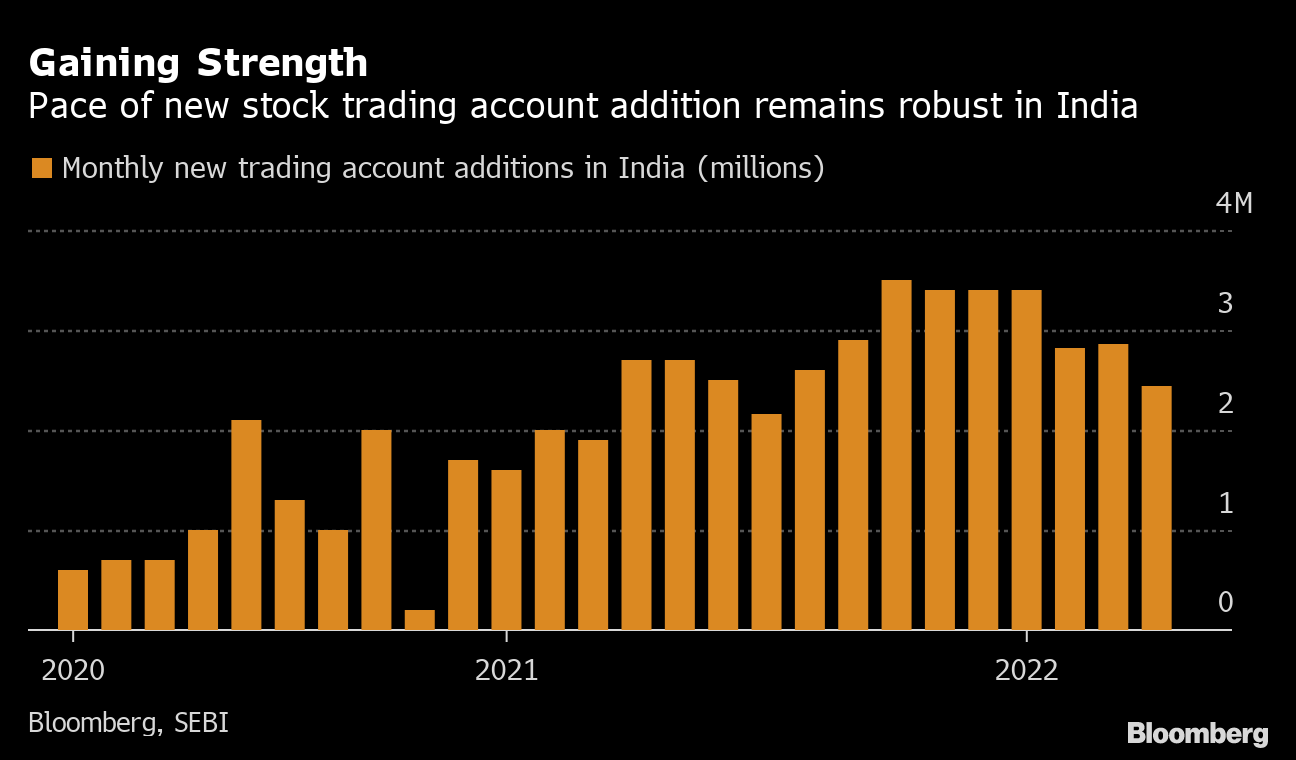 Regulators everywhere are grappling with those risks, but the absolute scale of the shift in India is creating unique new regulatory complexities for Prime Minister Narendra Modi's government. Long a nation where households squirreled away their savings in the bank, about 43 million equity accounts have been added in India since the beginning of 2021, more than the total populations of Belgium, Greece and Portugal put together.