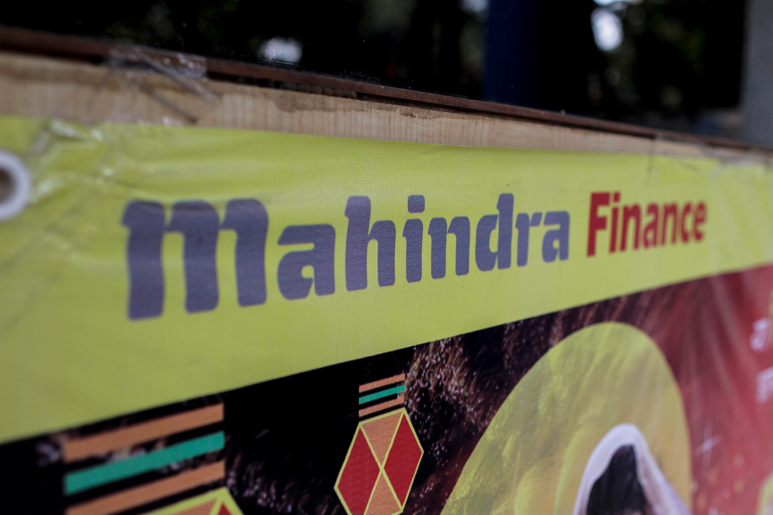 Mahindra & Mahindra Financial Services Ltd. signage is displayed outside one of the company’s branches in Mumbai. (Photographer: Dhiraj Singh/Bloomberg)