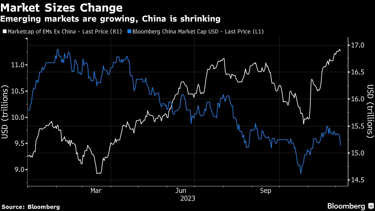Ultimately she also expects China's nearly 30% weight in the emerging-market index to decline, with other markets including India and Latin America taking a bigger share.