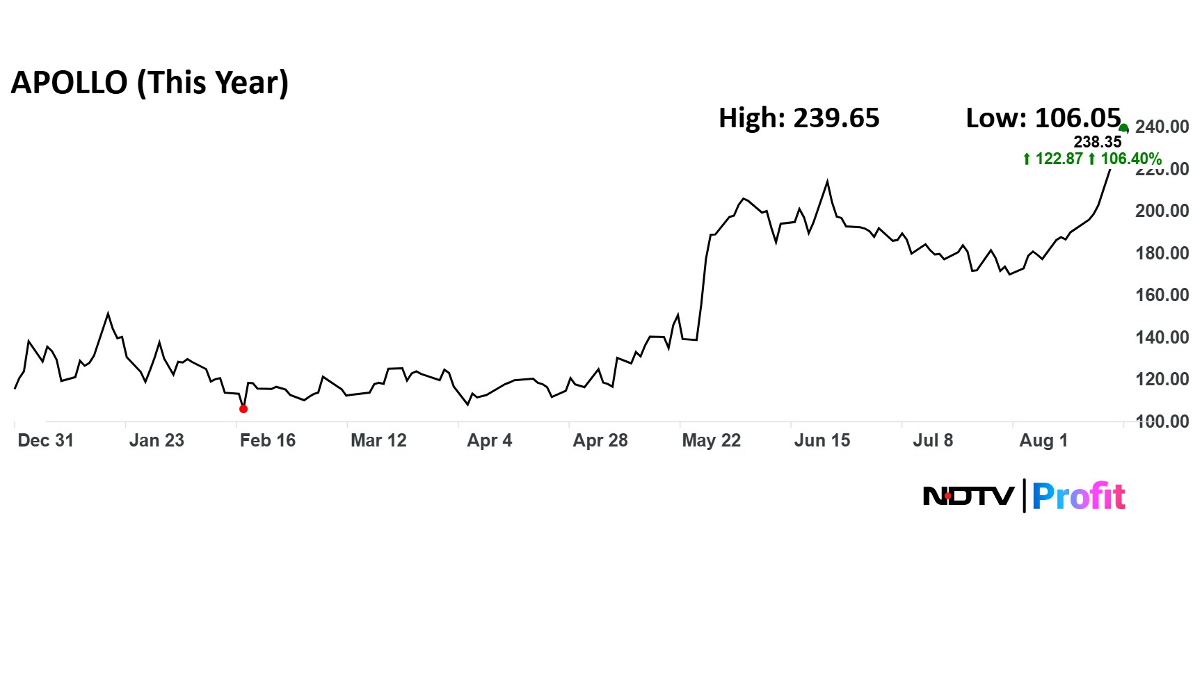 The stock has risen 127% in the last 12 months and 106% on a year-to-date basis.