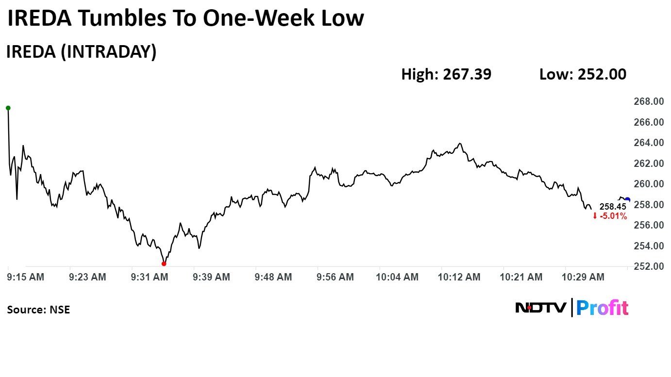 Shares of Indian Renewable Energy Development Agency Ltd. declined for the second day on Thursday amid profit-booking. The stock had hit record high on Monday following a 30% jump in first-quarter net profit. Stock markets were close on Wednesday for Muharram.