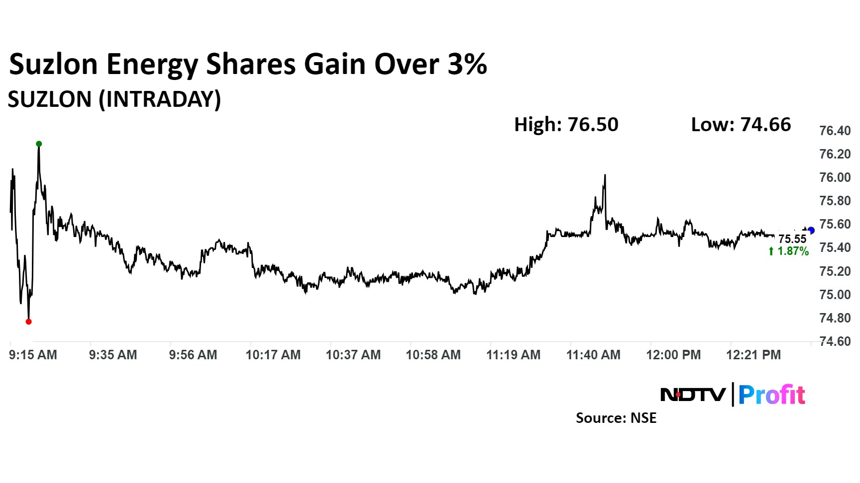 The scrip rose as much as 3.16% to Rs 76.50 apiece, the highest level since Aug. 30, 2024. It pared gains to trade 1.82% higher at Rs 75.52 apiece, as of 12:37 p.m. This compares to a 0.09% decline in the NSE Nifty 50 index.