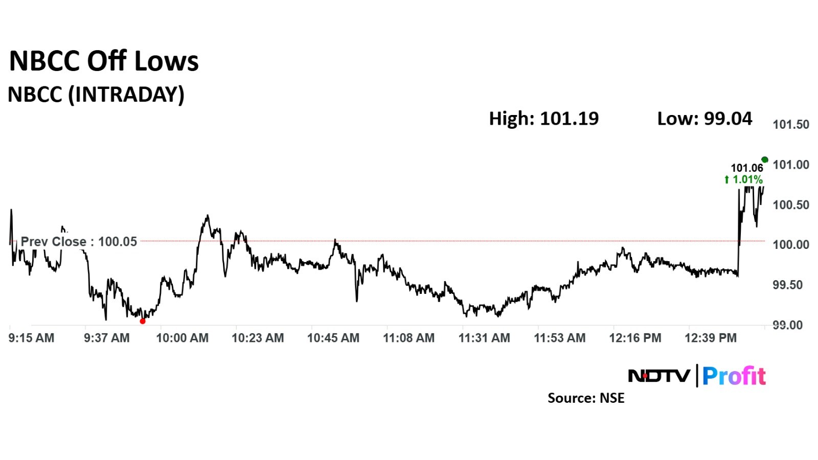 Share price of NBCC rose as much as 1.66% before paring gains to trade 1.6% higher at Rs 101.6 apiece, as of 1:09 p.m. This compares to a 0.54% advance in the NSE Nifty 50.