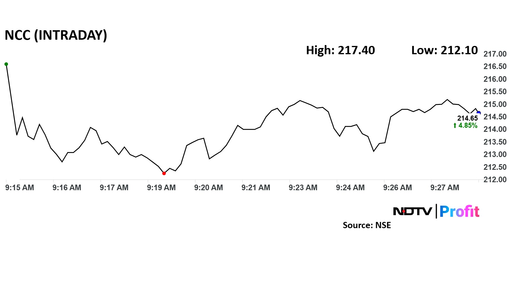 Shares of NCC rose over 6% to Rs 217.4 apiece, the highest since Feb. 6. It was trading 4.8% higher by 9:30 a.m. The benchmark Nifty 50 was up 0.1%.
