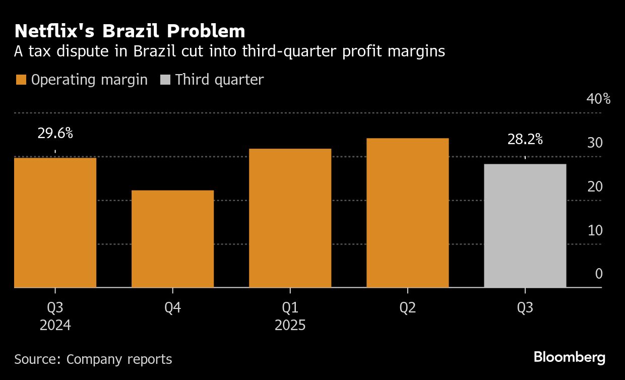 Netflix Inc. said a tax dispute with Brazil cut into third-quarter earnings, marring results that otherwise fell in line with Wall Street estimates.