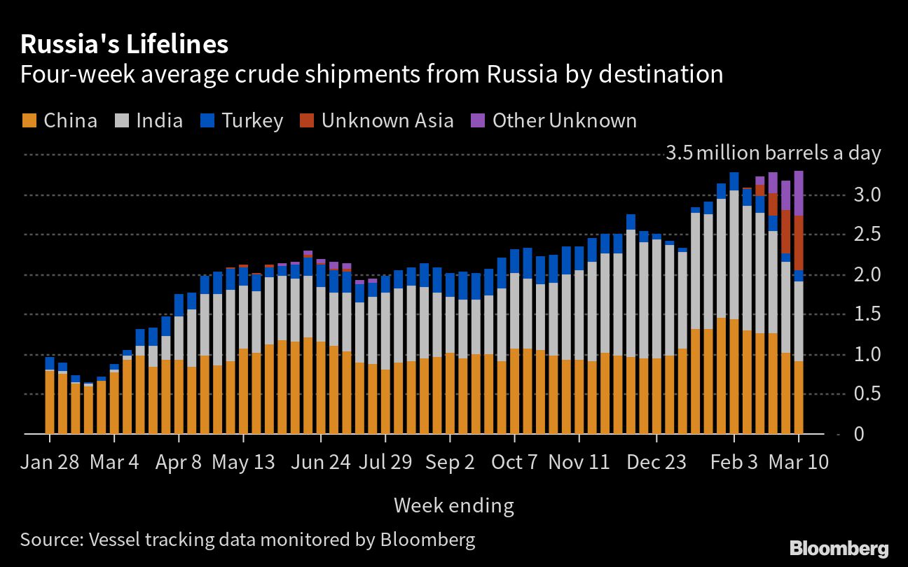 The Group of Seven and the European Union designed the sanctions on Russian energy with the aim of keeping the oil flowing, even as the measures added complexity as they sought to curb Moscow's revenues. US Assistant Treasury Secretary Ben Harris underscored last week just how opaque the trade has become.