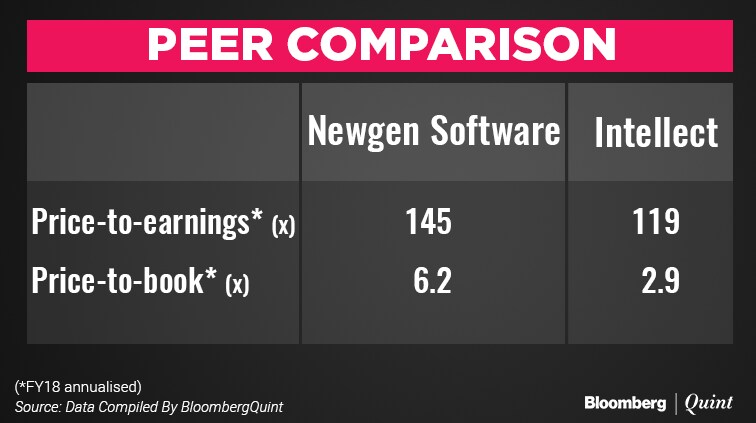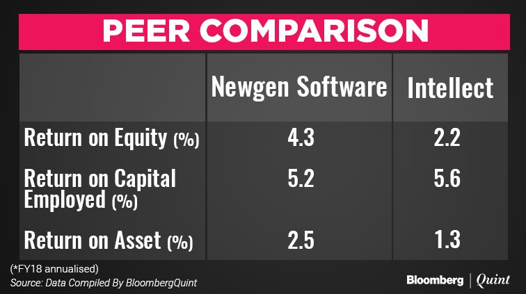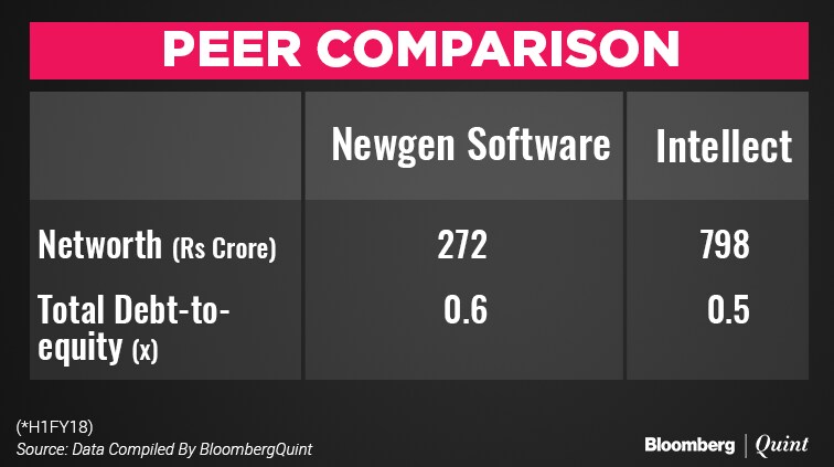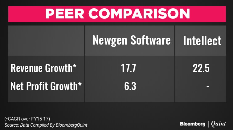 Newgen's revenue grew at a slower rate compared to Intellect; but Intellect has been reporting losses in three years to March 2017.