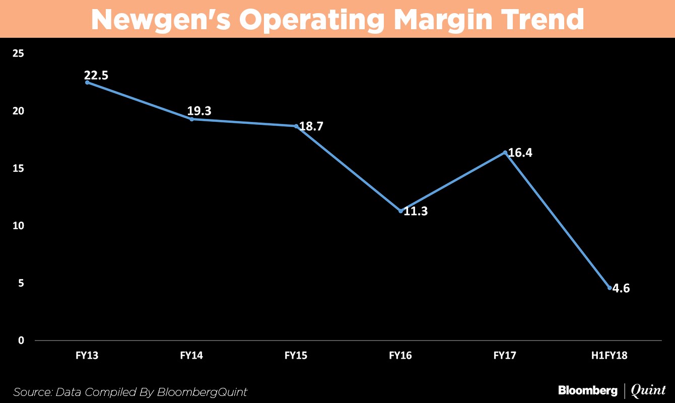 - Newgen's revenue and net profit for the half year ended September 2017 stood at Rs 207 crore and Rs 6 crore, respectively.