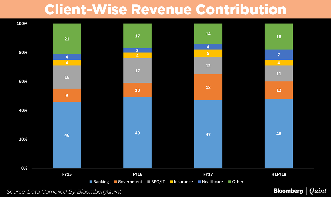 The company caters to banks like Trust Company of America, Mercantile Bank, ICICI Bank Ltd., Axis Bank Ltd., Yes Bank Ltd., Kotak Mahindra Bank Ltd. that contribute nearly 48 percent of the revenue.
