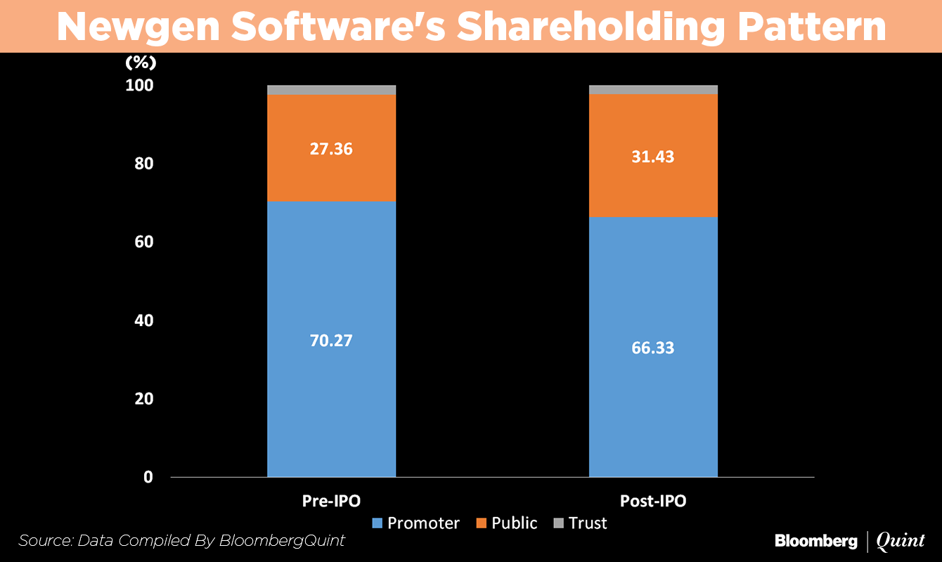 Newgen competes with listed peer Intellect Design Arena Ltd., which provides software products to banking, financial services and insurance sector. Intellect was demerged from Polaris Consulting and Services Ltd. in 2014.