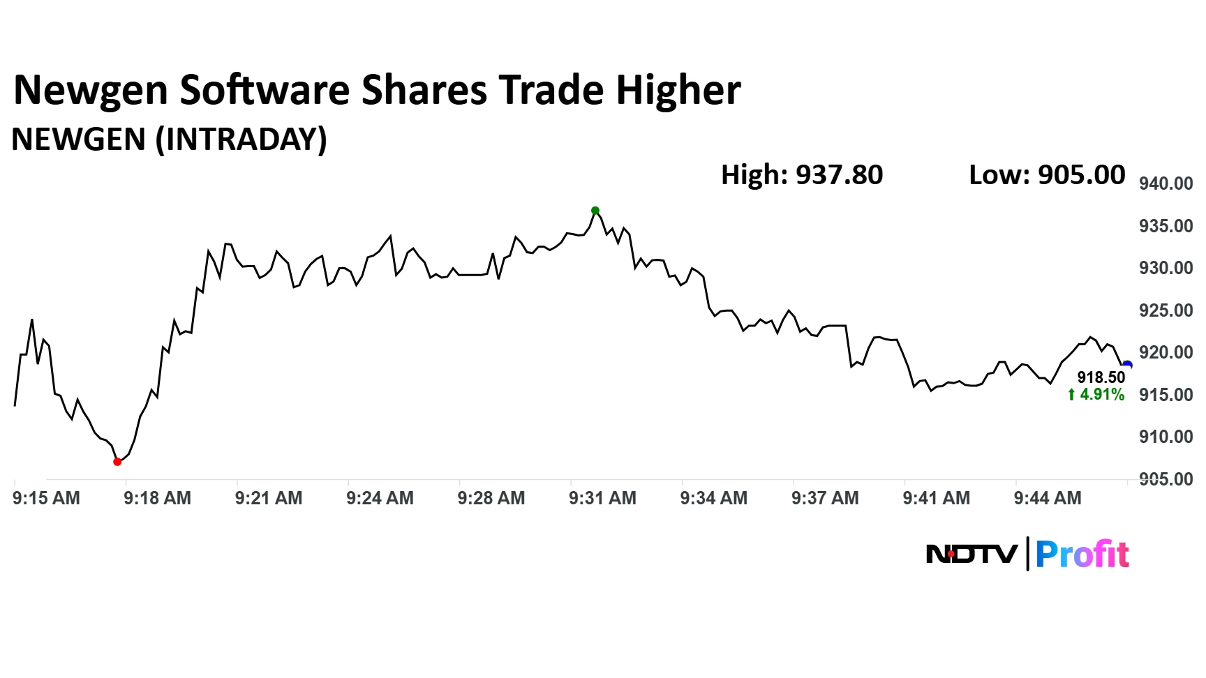 Shares of Newgen Software Technologies rose as much as 7.12% to Rs 937.80 apiece. They pared gains to trade 4.91% higher at Rs 918.50 apiece, as of 9:50 a.m. This compares to a 0.03% decline in the NSE Nifty 50.