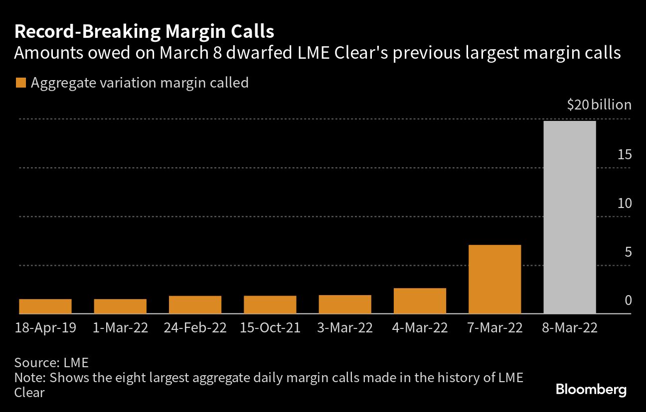 Defaults are not an everyday occurrence on the LME, or any other exchange. The LME's clearinghouse had never put a member into default since it started operations in 2014. That CCBI, as the unit is known, was unable to pay its margin call was a sign of the extreme stress on the market.