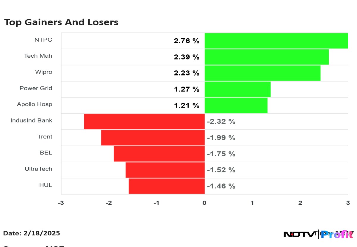 Shares of NTPC Ltd., Tech Mahindra Ltd., Wipro Ltd. and Power Grid Corp. contributed positively to changes in the NSE Nifty 50 stocks on Tuesday.