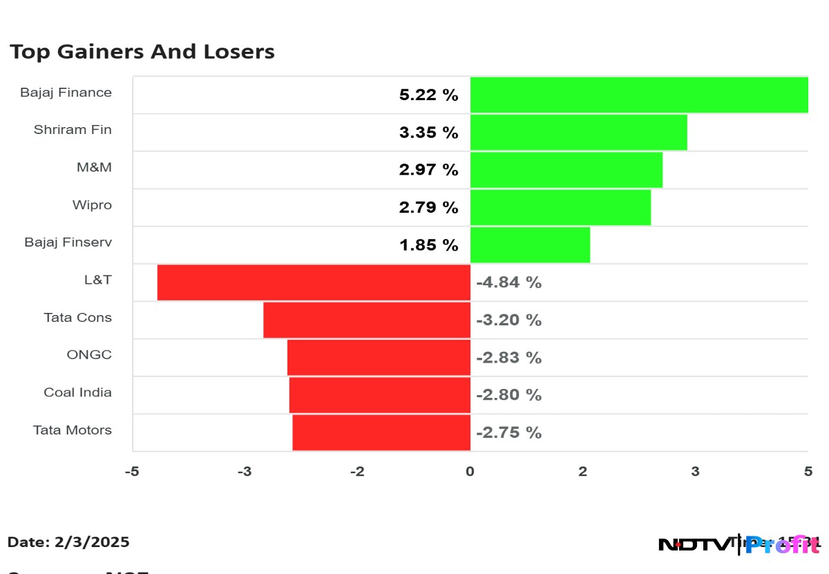 Shares of Bajaj Finance Ltd., Mahindra & Mahindra Ltd., Wipro Ltd., Infosys Ltd. and Shriram Finance Ltd. were the top gainers among the NSE Nifty 50 stocks on Friday.