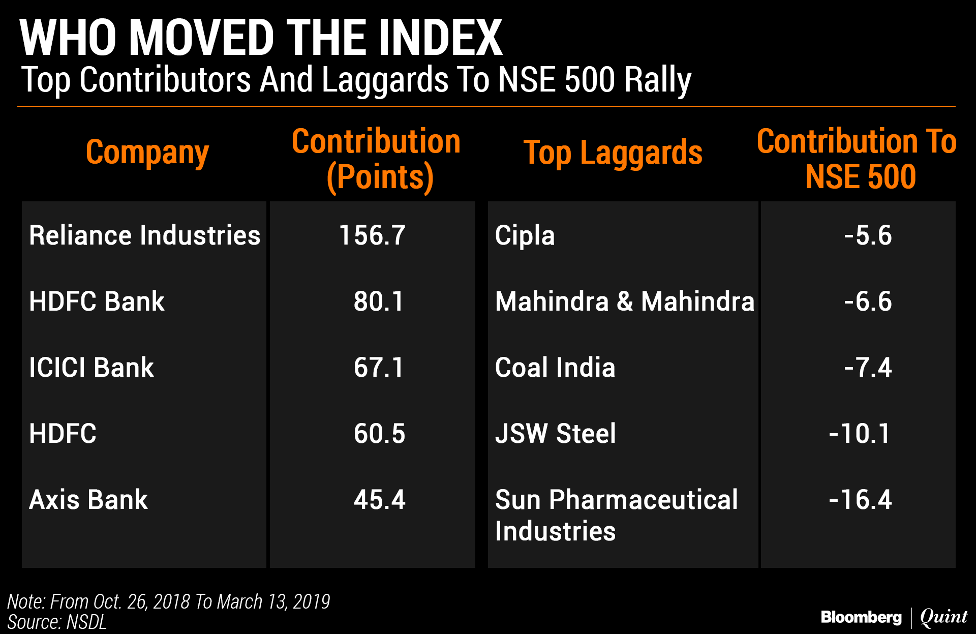 Large-cap stocks in the Nifty 50 index accounted for close to three-fourths of the jump in the broader index since the previous low on Oct. 26 last year till March 13, contributing nearly 720 points. The remaining 450 accounted for 280 points. That's almost equivalent to the contribution of just three Nifty 50 heavyweights—Reliance Industries Ltd., HDFC Bank Ltd. and ICICI Bank Ltd.